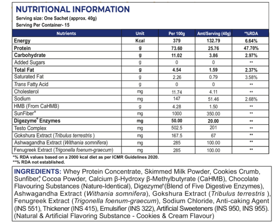 Primary Protein: Whey Protein Concentrate (25 g per serving)